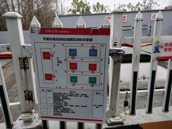 中國石化銷售股份有限公司浙江杭州余杭喬莫東路加油站成立于2014年12月1日,負責人徐偉勝,主要從事汽油、柴油的儲存經營,不銷售散裝汽油,無自助加油。加油站位于杭州市余杭區喬司街道喬莫東路193號,占地面積1083.1m2。 浙江杭州余杭喬莫東路加油站持有杭州市應急管理局核發的危險化學品經營許可證,登記編號:浙杭安經字[2019]08004628,許可經營范圍:帶儲存經營 成品油:汽油;有效期至2022年4月7日。已取得浙江省商務廳核發的成品油零售經營批準證書,登記編號:油零售證書第31110139號,有效期至2024年6月19日。 加油區設置加油罩棚,罩棚下設置3臺雙油品四槍潛油式加油機(汽油)和1臺單油品雙槍加油機(柴油);埋地罐區設有4只埋地油罐(內襯法改造),其中30m3汽油罐1只(95#)、50m3汽油罐1只(92#),50m3柴油罐1只(0#),30m3停用罐1只,折算后油罐總容積105m3(柴油罐折半計入),根據《汽車加油加氣加氫站技術標準》GB50156-2021的相關規定,該站屬于二級加油站。加油站已安裝汽油卸油和加油油氣回收系統。