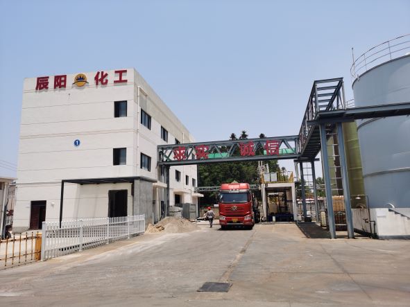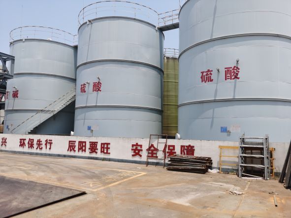 辰陽化工于2019年08月28日取得衢州市應急管理局核發的危險化學品經營許可證(有效期至2022年08月27日),證書編號:衢應急經(龍)字2019000010號,許可經營范圍:帶儲存經營鹽酸(液體儲量3000噸)、硫酸(液體儲量1550噸)、液堿(液體儲量900噸),共計3種;無倉儲經營氫氧化鈉、氨溶液[含氨>10%]、次氯酸鈉溶液[含有效氯>5%]、1,2-二甲苯、1,3-二甲苯、1,4-二甲苯、二甲苯異構混合液、氟化氫[無水]、氫氟酸、環己酮、環己烷、三氯甲烷、四氯乙烯、1,1,2,2-四氯乙烷、1,1-二氯乙烯、1,2-二氯乙烯、三氯乙醛[穩定的]、環氧樹脂、乙酸乙酯、甲醇、乙醇[無水]、涂料用稀釋劑、甲醛溶液、甲酸、乙酸[含量>80%]、乙酸溶液[10%<含量≤80%]、磷酸、碳酸鋰、氫氧化鋰、氯化鈣;易制爆:過氧化氫溶液[含量>8%]、硝酸、六亞甲基四胺,共計33種(其中碳酸鋰、氯化鈣為非危險化學品)。經營儲存場所位于廠區北側,包括1座戊類罐區(1個500m3液堿罐、2個500m3硫酸罐和6個500m3鹽酸罐)、1座裝卸車臺及輔助車間1F(包裝間)。